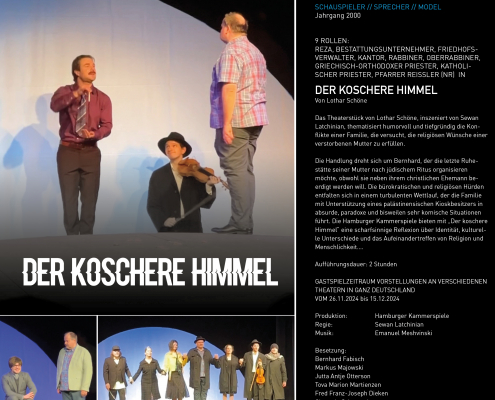 9 Rollen: Reza, Bestattungsunternehmer, Friedhofsverwalter, Kantor, Rabbiner, Oberrabbiner,